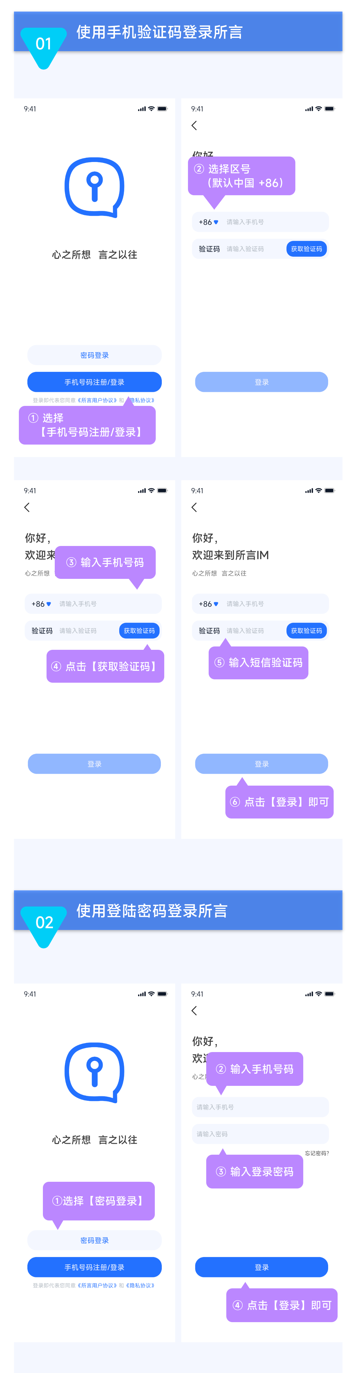 在选择登录方式中选择“密码登录”,按照指引输入电话号码和登录密码,输入后点击“登录”即可进入所言 APP。